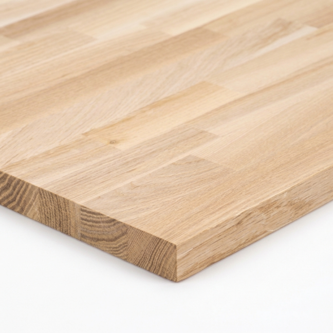 애쉬 집성목(사이드 핑거) - 톱니 자국 없는 프리미엄 사이드 집성! 윗면이 솔리드처럼 깨끗하고 조직이 치밀하여, 휨 걱정 없는 튼튼한 식탁 상판이나 평생 쓰는 서재 책상용으로 적극 추천합니다.